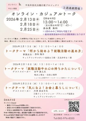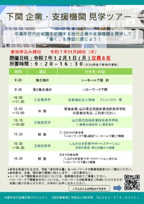 山口県の中高年世代(35歳~59歳)で就職を希望する方とそのご家族を対象に3つのサービスで応援します。