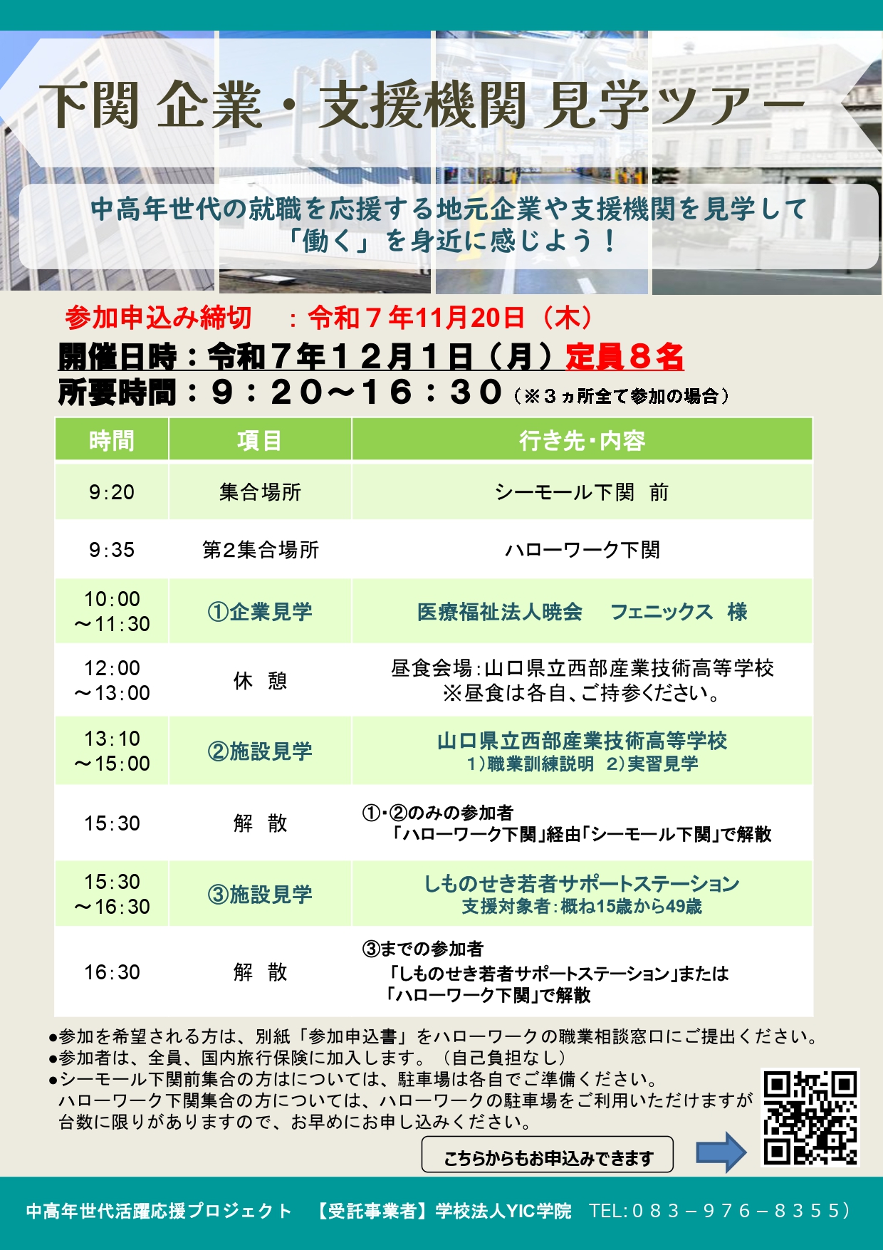 12月1日(月)下関市にて「企業・支援機関見学ツアー」を開催いたします。